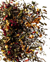 Tea, pineapple bits, apple bits, hibiscus, coconut chips, liquorice, apple slices, natural flavour, grapes, rose petals, peony petals.