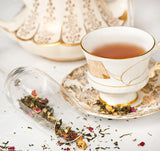 I first tasted the Champagne Bouquet tea when I visited Cupan Tae last summer while on a trip to Galway. I fell in love instantly! It has a subtle floral aroma and taste that seems to get better with every sip. Every time I brew this lovely white tea, I am transported back to Galway.